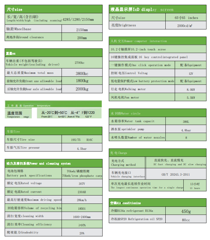 JC-DEV8240 多媒體掃路機(jī)配置有全景玻璃結(jié)構(gòu)的駕駛室,舒適冷暖空調(diào)、安全警示工作燈、10.2寸超大觸摸屏、 一鍵操作按鈕、行車 和倒車雙錄高清行車儀 。70kwh 的超大容量電池組65寸大液晶顯示屏 ;掃刷轉(zhuǎn)速采用手柄式速度調(diào)節(jié)閥控制,可以根據(jù)道路實(shí)際路況控制無(wú)級(jí)調(diào)速 ;清掃掃刷位置和吸風(fēng)口位置采用水霧噴淋裝置,確保在清潔過(guò)程中不會(huì)產(chǎn)生揚(yáng)塵造成二次污染 ;該機(jī)掃刷寬度有調(diào)節(jié)功能,可由1.6米調(diào)節(jié)至2.4米,廣泛適用于城市非機(jī)動(dòng)車道、城市廣場(chǎng)、公園、體育場(chǎng)館、會(huì)展中心等場(chǎng)所的清掃作業(yè)。