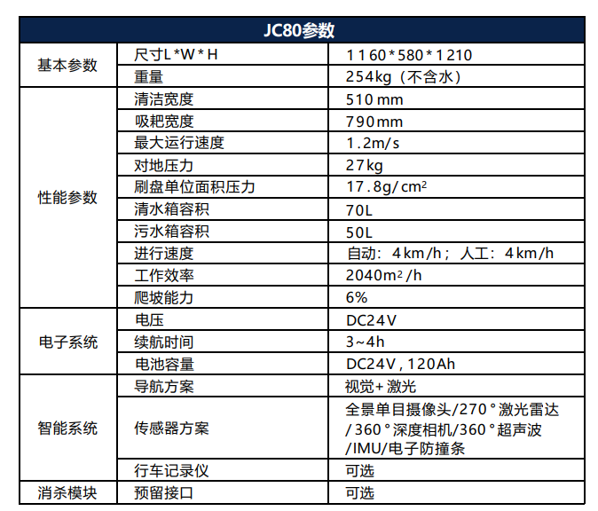 J C 8 0 專 為 各 類 商用場景室內(nèi)區(qū)域提供地面清潔解決方案 ,能夠自主規(guī)劃工作路徑和避障 , 自動清掃、消毒。配備微秒級自研智能系統(tǒng) , 實時響應(yīng),實時顯示,安全避障 。主動規(guī)劃清潔路徑,高效清洗消殺地面 , 構(gòu)建美好商業(yè)環(huán)境。
